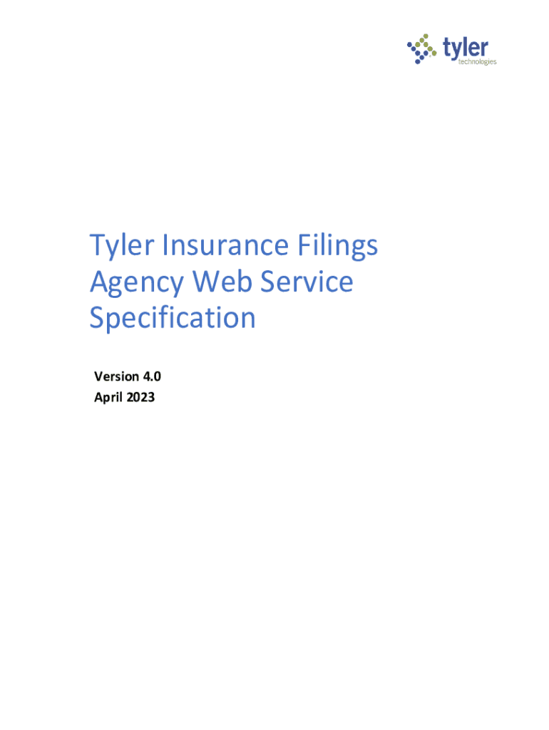 Tyler Insurance Filings Agency Web Service Specification Version 4.0 April 2023Contents Introduction.............................................................................................................................