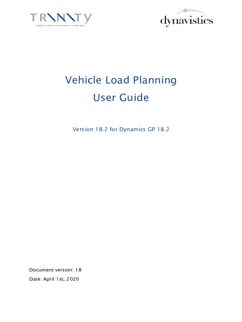 Vehicle Load Planning User Guide Version 18.2 for Dynamics GP 18.2Document version: 18 Date: April 1st, 2020CONTENTSContents CONTENTS .............................................................................................................................