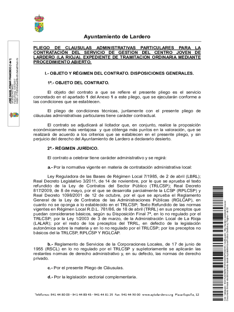 DIEGO DE CLAUSES ADMINISTRATIVE PARTICULARS PARA LA