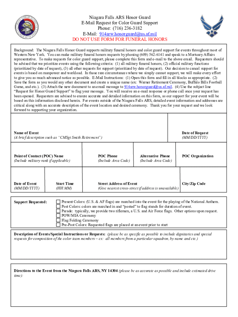Get the free request honor guard support - Niagara Falls Air Reserve Station