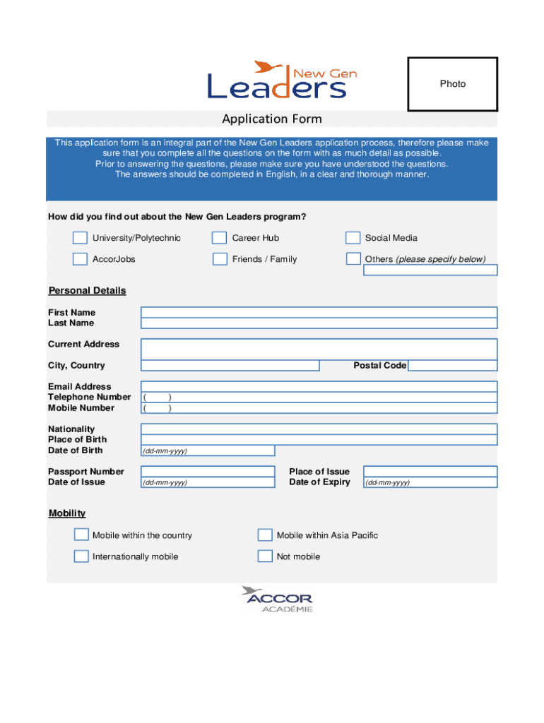This application form is an integral part of the New Gen Leaders application process, therefore please make