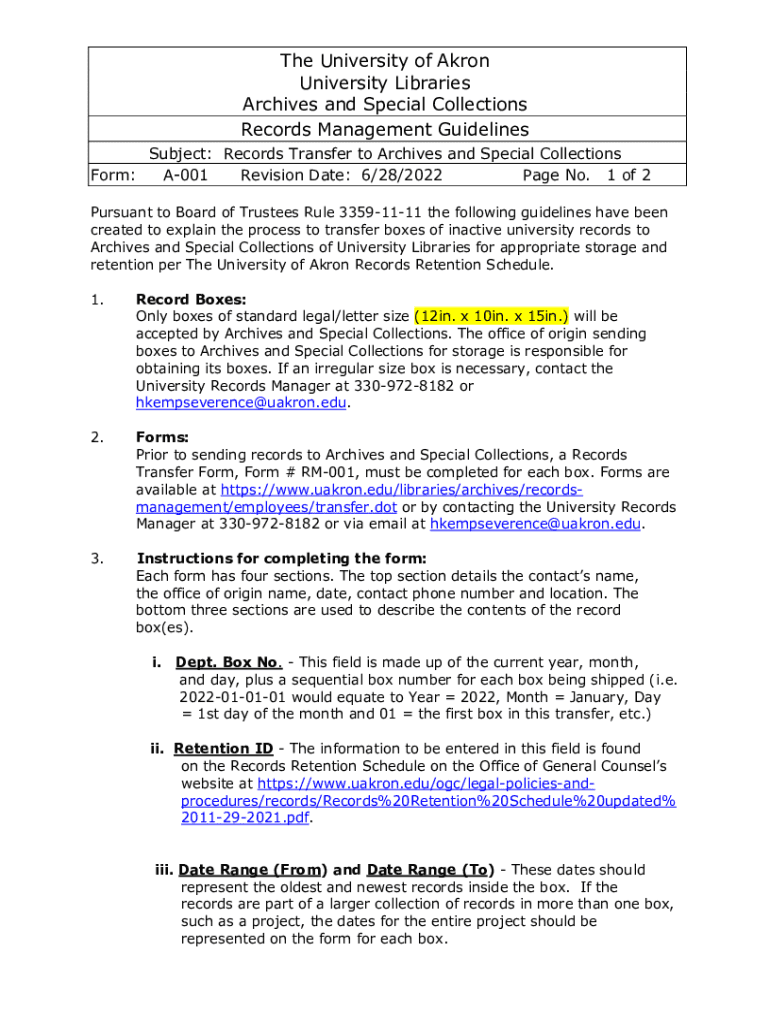 Get the free Records Transfer to Archives and Special Collections Form