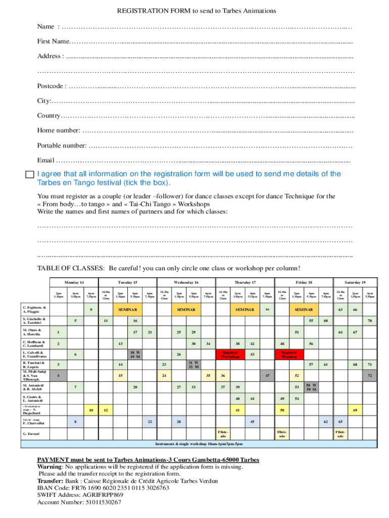REGISTRATION FORM to send to Tare Animations Name : ...... First Name..................................................................................................................................