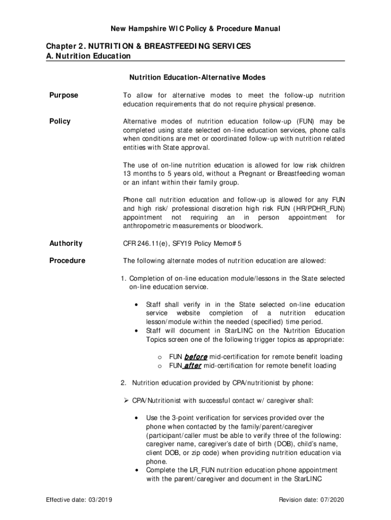 Get the free WIC Policy & Procedure ManualNew Hampshire Department ...
