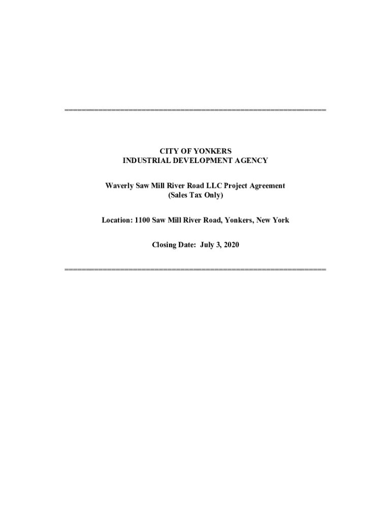 CITY OF YONKERS INDUSTRIAL DEVELOPMENT AGENCY Waverley Saw Mill River Road LLC Project Agreement (Sales Tax Only) Location: 1100 Saw Mill River Road, Yonkers, New York Closing Date: July 3, 2020,