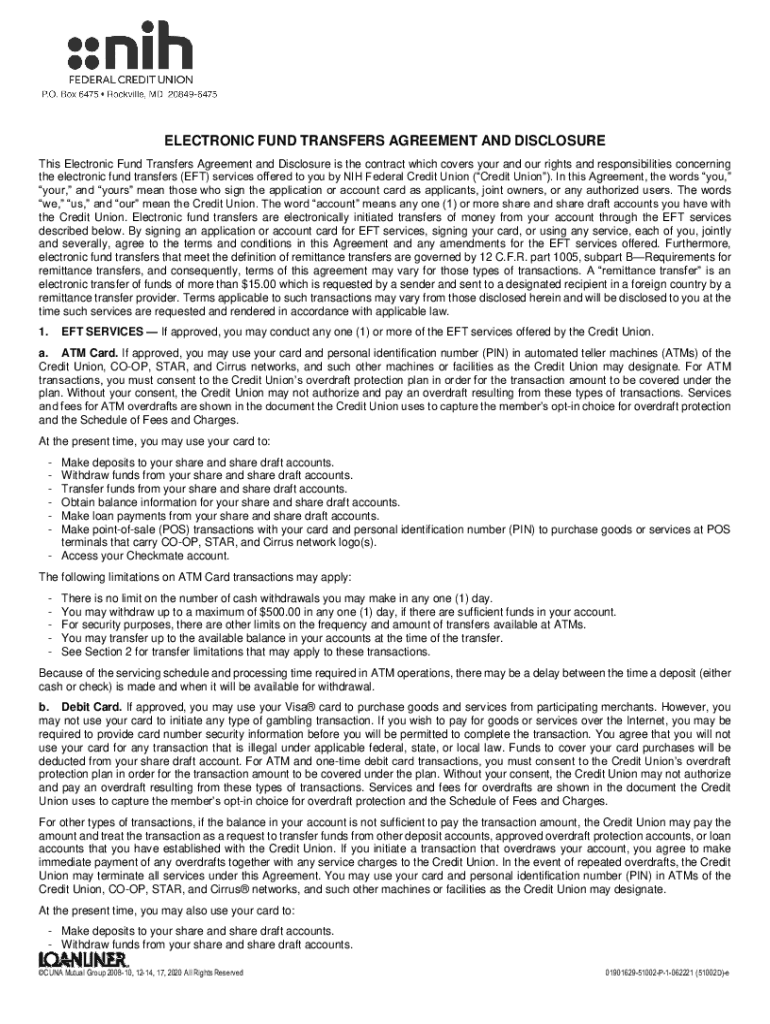 BUSINESS MEMBERSHIP PACKET (Revised 01/06/2023)IMPORTANT NOTICE The documents contained in this booklet are your permanent copies of NIH Federal Credit Unions Agreements and Disclosures. Please keep