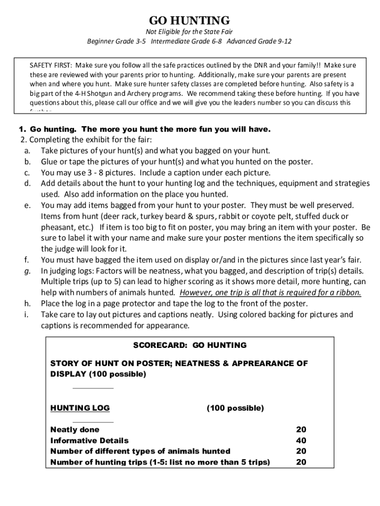 GO Huntington Eligible for the State Fair Beginner Grade 35 Intermediate Grade 68 Advanced Grade 912 SAFETY FIRST: Make sure you follow all the safe practices outlined by the DNR and your family!!