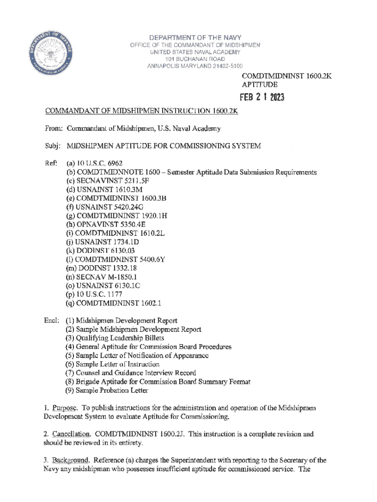Get the free COMMANDANT OF MIDSHIPMEN INSTRUCTION 1600