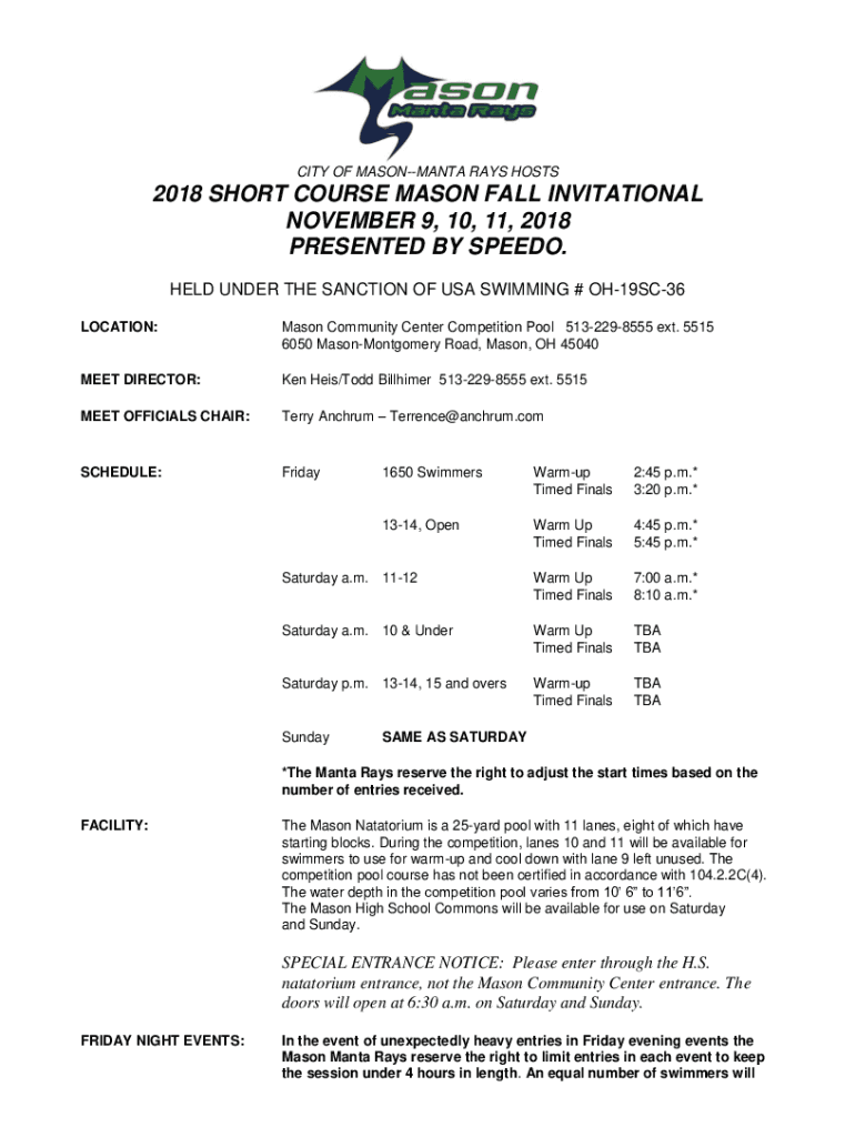 CITY OF MASONMANTA RAYS HOSTS2018 SHORT COURSE MASON FALL INVITATIONAL