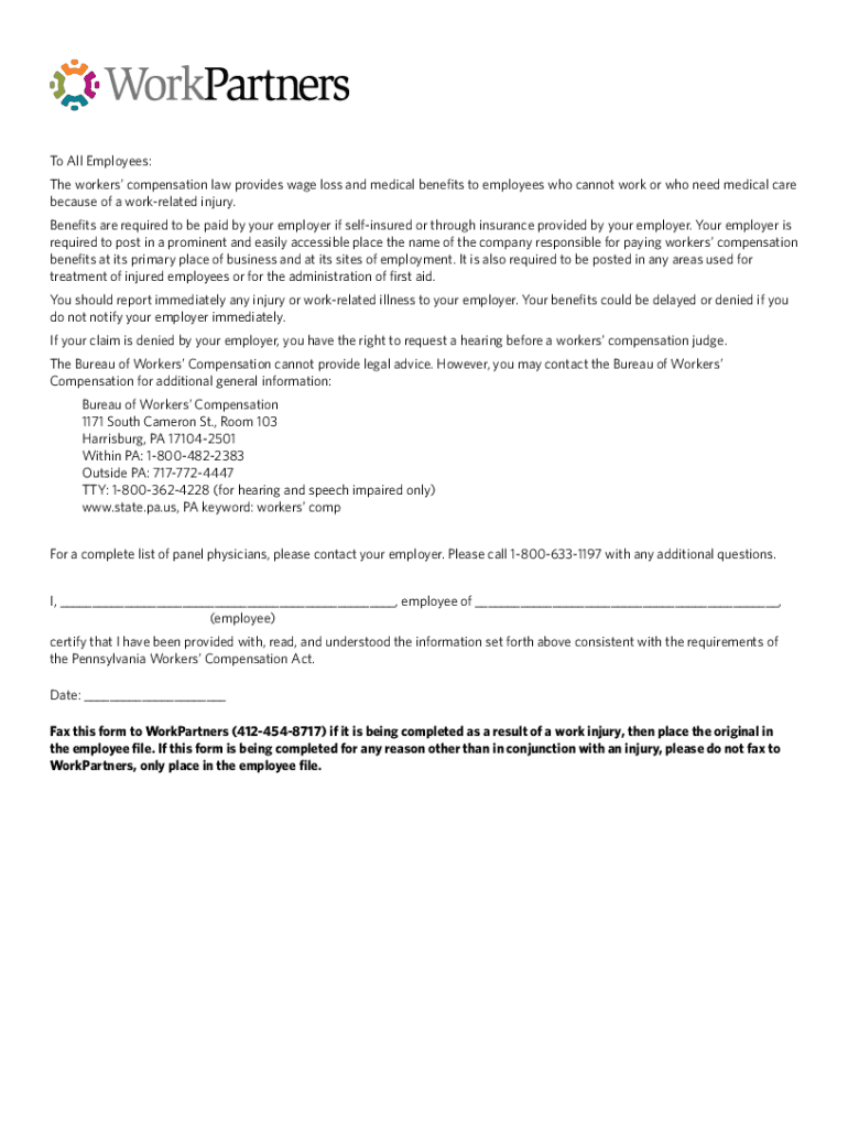 NOTICE TO EMPLOYEES Health Care Provider Panel and Procedures SY 2020.2021 New Herein CASE OF A WORK INJURY OR ILLNESS:1. You must immediately report the injury or illness to your supervisor.2. Report