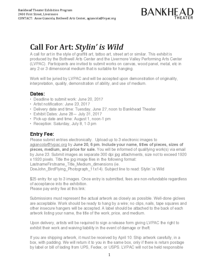 CONTACT:AnneGiancola, BothwellArtsCenter, agiancola@lvpac.orgCallForArt:StylinisWild