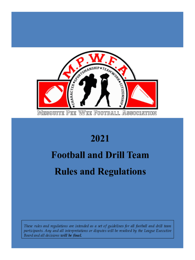 2021 Football and Drill Team Rules and RegulationsThese rules and regulations are intended as a set of guidelines for all football and drill team participants. Any and all interpretations or disputes