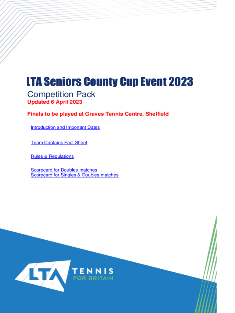 ALTA Seniors County Cup Event 2023 Competition Pack Updated 6 April 2023 Finals to be played at Graves Tennis Center, Sheffield Introduction and Important Dagestan Captains Fact Sheet Rules & Regulations
