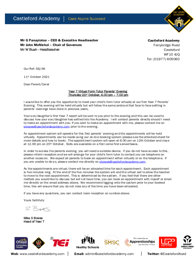 Get the free Year 7 Virtual Form Tutor Parents' Evening