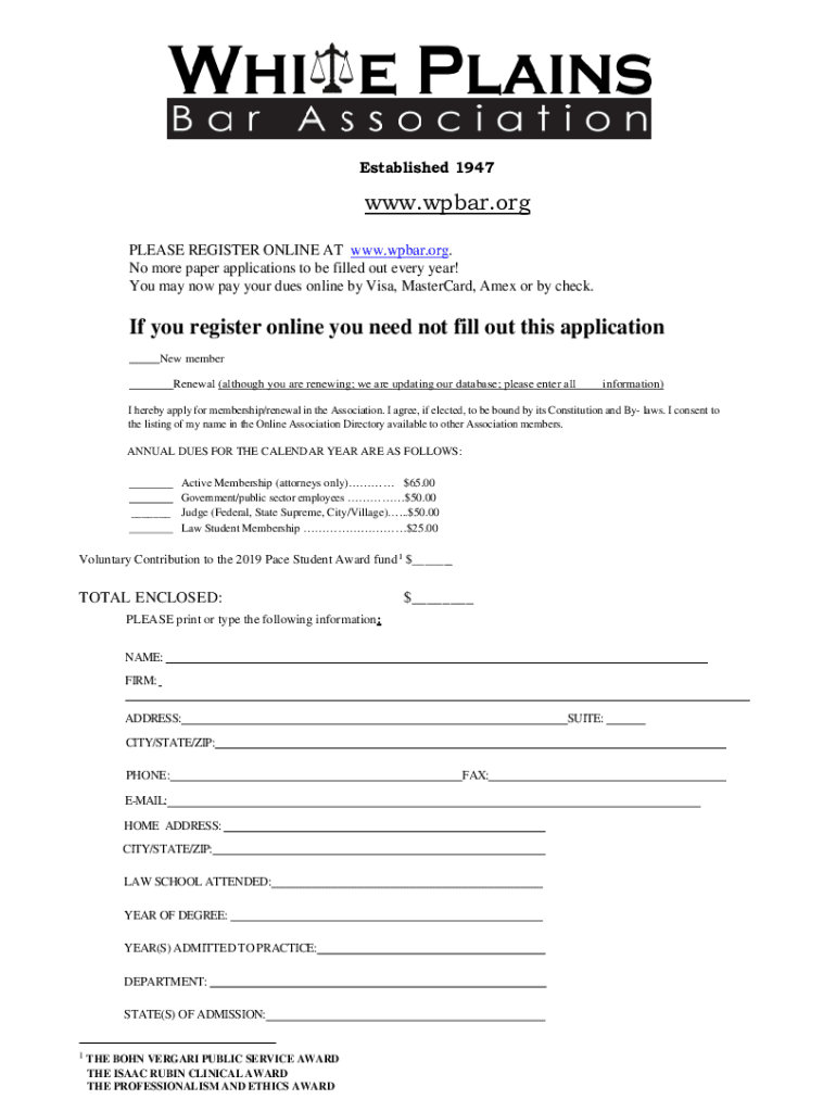 Established 1947www.war.org PLEASE REGISTER ONLINE AT www.wpbar.org. No more paper applications to be filled out every year! You may now pay your dues online by Visa, MasterCard, Amex or by check.