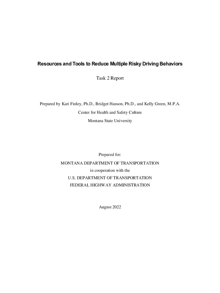 Resources and Tools to Reduce Multiple Risky Driving Behaviors Task 2 ReportPrepared by Kari Finley, Ph.D., Bridget Hanson, Ph.D., and Kelly Green, M.P.A. Center for Health and Safety Culture Montana
