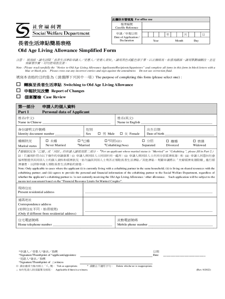 For office use Case file Reference Date of Application / Declaration Year Old Age Living Allowance Simplified Form Month Day Note : Please read carefully