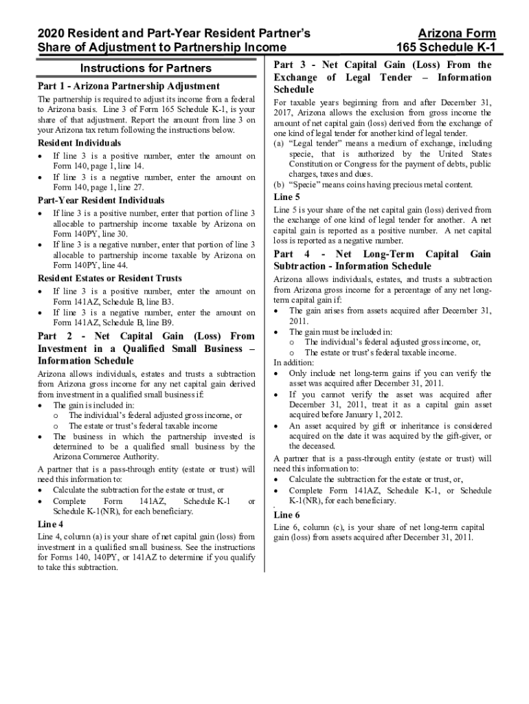 2020 Resident and Part Year Resident Partners Share of Adjustment to Partnership Income Instructions for Partners Part 1 Arizona Partnership Adjustment partnership is required to adjust its income