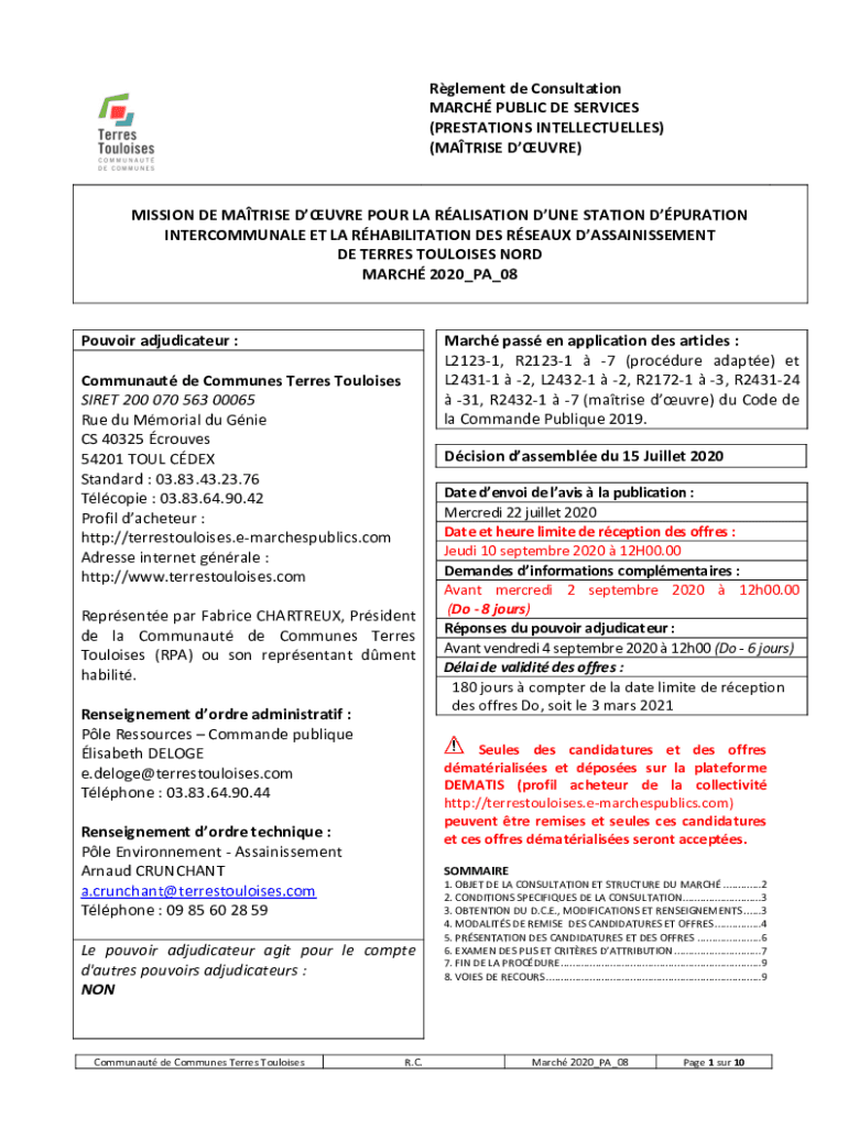 La maîtrise d'oeuvre pour le doit être remplie en fournissant tous les détails techniques et administratifs du projet.
