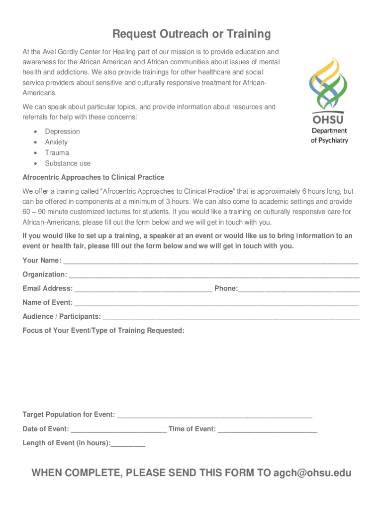 Fill out your request outreach or training online with pdfFiller!