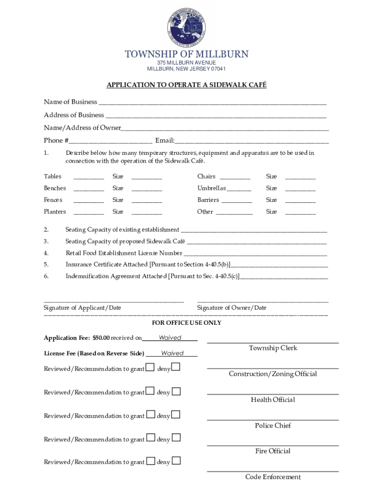WILBURN, NEW JERSEY 07041CHECK OFF LIST OF DOCUMENTS TO BE SUBMITTED FOR SIDEWALK CAF LICENSE