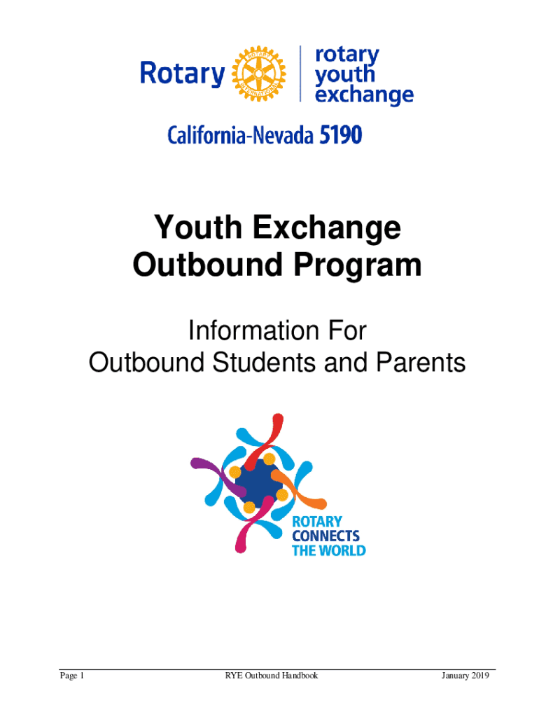 Youth Exchange Outbound Program Information For Outbound Students and Parents Page 1RYE Outbound Handbook January 2019Host Contacts NAME HOST PARENTS # 1EMAIL HOST PARENTS # 2EMAILHOST PARENTS # 3EMAILHOST