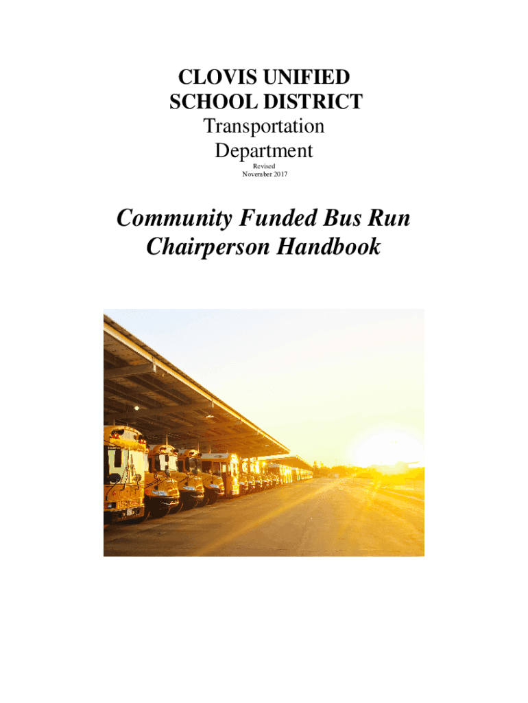 CLOVIS UNIFIED SCHOOL DISTRICT Transportation Department Revised November 2017Community Funded Bus Run Chairperson HandbookCommunity Funded Bus Run (CFB) Table of Contents Board Policy/Administrative