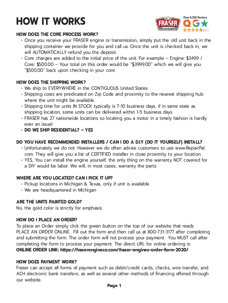 HOW IT WORKS HOW DOES THE CORE PROCESS WORK? Once you receive your FRASER engine or transmission, simply put the old unit back in the shipping container we provide for you and call us. Once the unit