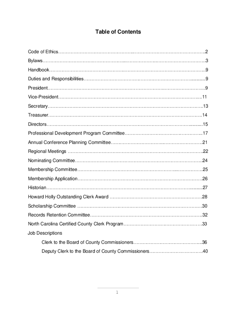 Table of ContentsCode of Ethics...2 Bylaws........3 Handbook...9 Duties and Responsibilities............9 President