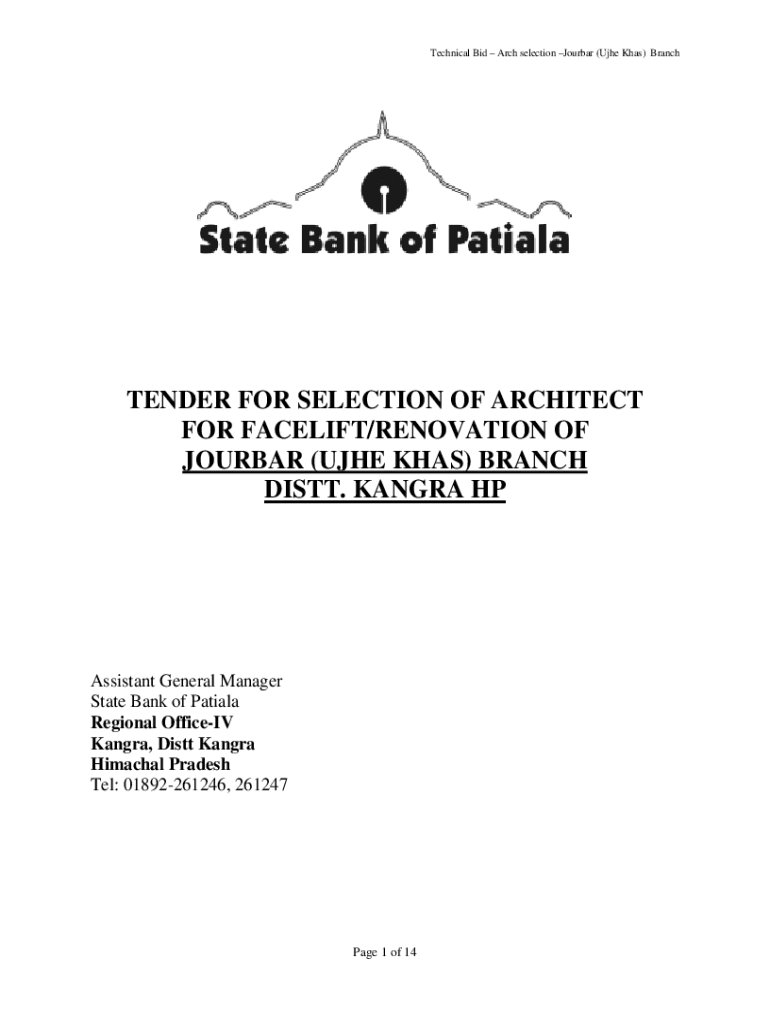 Technical Bid Arch selection Journal (The Has) BranchTENDER FOR SELECTION OF ARCHITECT