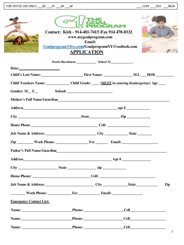 FOR OFFICE USE ONLY: ___BC ___FF ___AP ___M___ 1199 ___ DSS ___Recontact: Kirk 9144817415 /Fax 914 4780332 www.mygoalprogram.com Email: Goalprogram@live.com/GoalprogramNY@outlook.comAPPLICATION Pearls