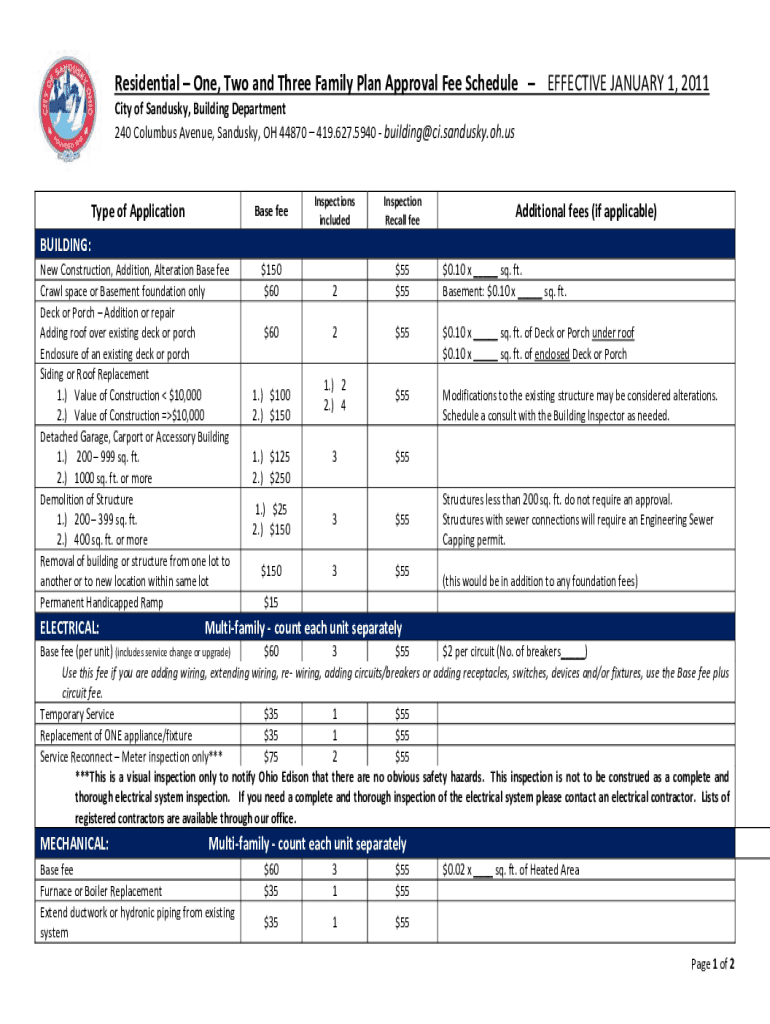 Residential One, Two and Three Family Plan Approval Fee Schedule EFFECTIVE JANUARY 1, 2011,