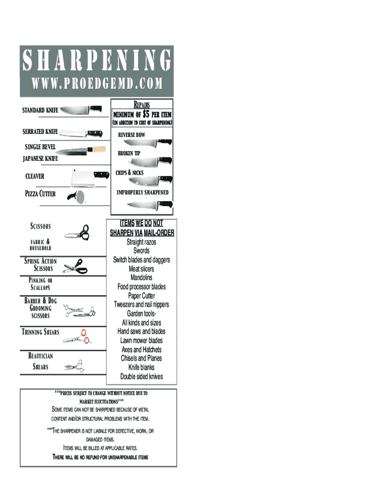 To fill out Edge Pro knife sharpeners, you need to provide information about the knives being sharpened and the sharpening process.