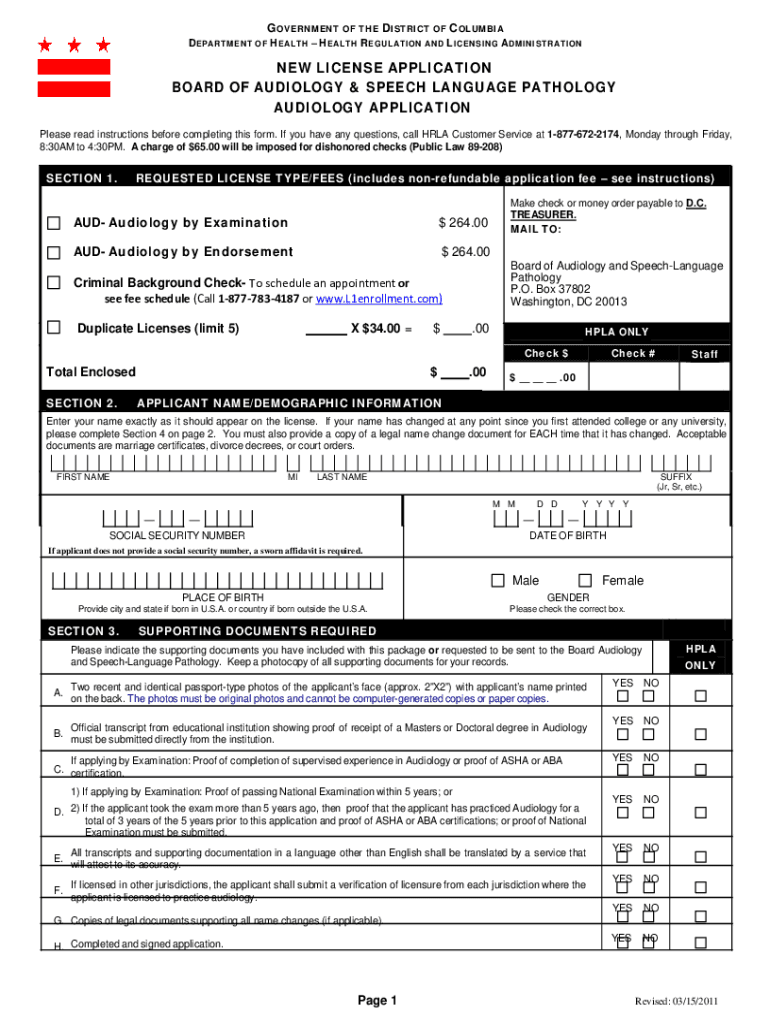 Get the free Audiology- New License Application- ... - dcra dc