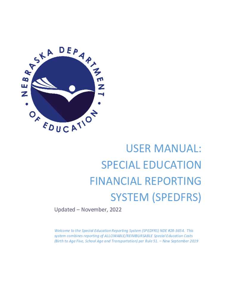 USER MANUAL: SPECIAL EDUCATION FINANCIAL REPORTING SYSTEM (SPED FRS) Updated November 2022 Welcome to the Special Education Reporting System (SPED FRS) NODE #283654. This system combines reporting