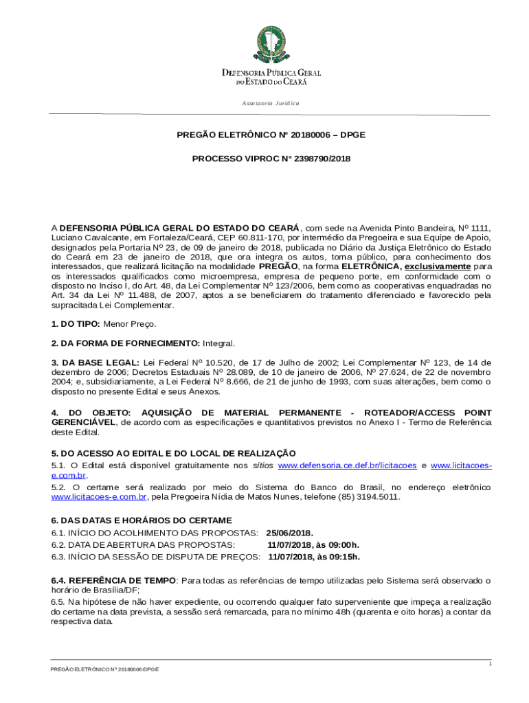 Assessor JurdicaPREGO ELECTRIC N 20180006 PGE PROCESS VIP ROC N 2398790/2018A DEFENSORIA PBL ICA GERALD DO ESTATE DOC EAR, com see Na Agenda Pinto Bandana, N 1111, Luciano Cavalcade, em Fortaleza/Care,
