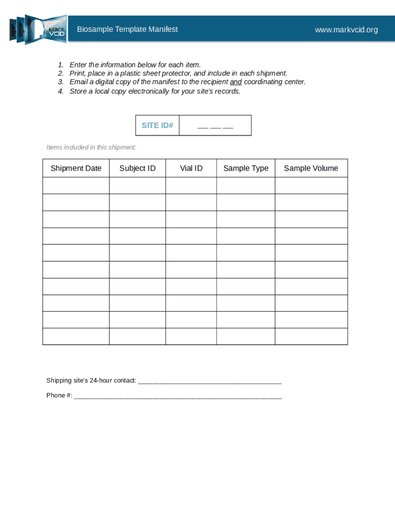 Submit the completed form as per the instructions provided by the NIH VCID Biomarkers Consortium.