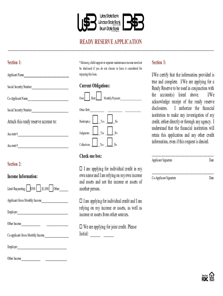 READY RESERVE APPLICATION___Section 1: Applicant Name___*Alimony, child support or separate maintenance income need not be disclosed if you do not choose to have it considered for repaying this loan.