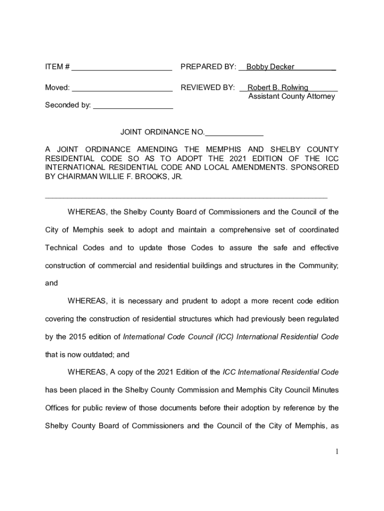 ITEM # ___PREPARED BY: __Bobby DeckerMoved: ___REVIEWED BY: __Robert B. Rolling___ Assistant County AttorneySeconded by: ____JOINT ORDINANCE NO.___ A JOINT ORDINANCE AMENDING THE MEMPHIS AND SHELBY