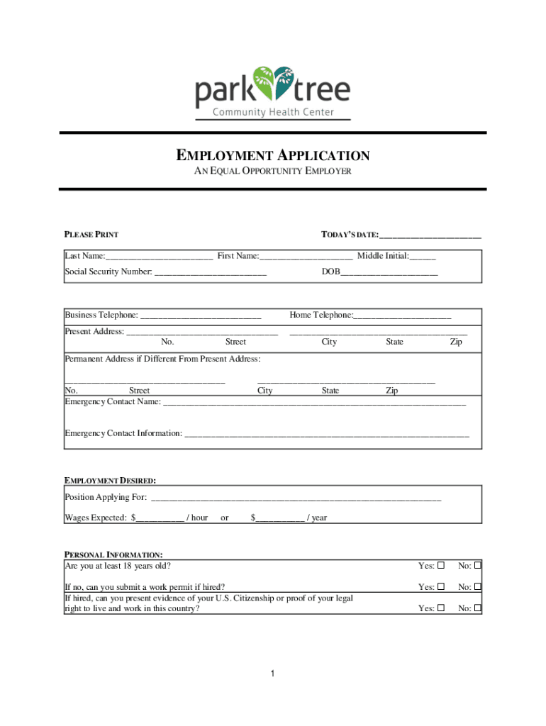 EMPLOYMENT APPLICATION AN EQUAL OPPORTUNITY EMPLOYERTODAYS DATE:___PLEASE Print Name:___ First Name:___ Middle Initial:___ Social Security Number: ___DOB___Business Telephone: ___Home Telephone:___Present
