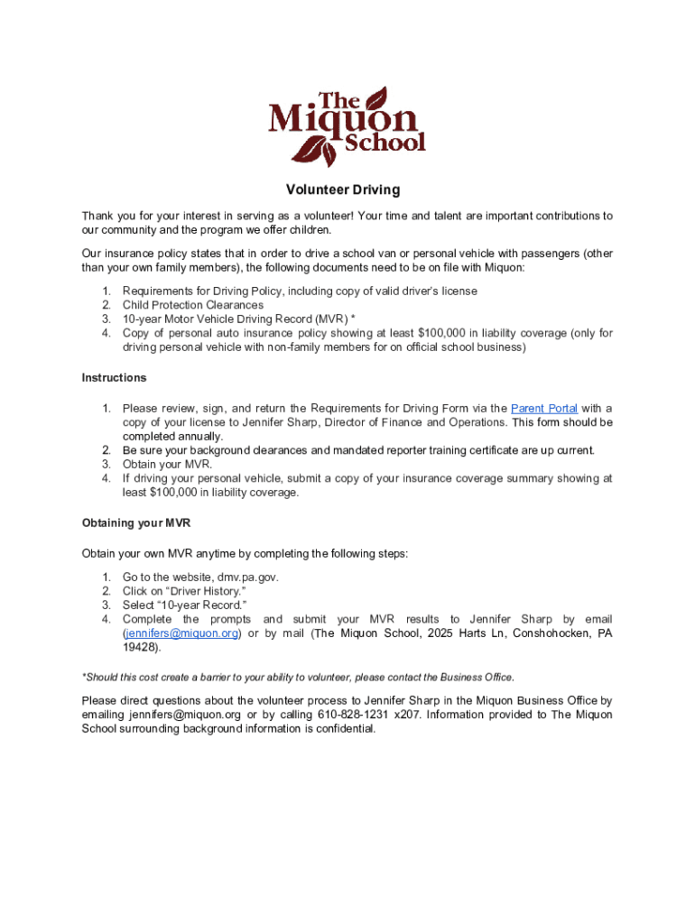 Volunteer Driving Thank you for your interest in serving as a volunteer! Your time and talent are important contributions to our community and the program we offer children. Our insurance policy states
