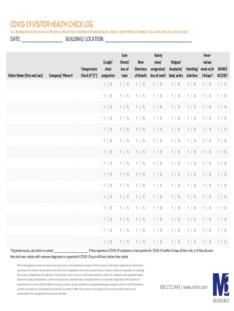 COVID-19 VISITOR HEALTH CHECK LOG