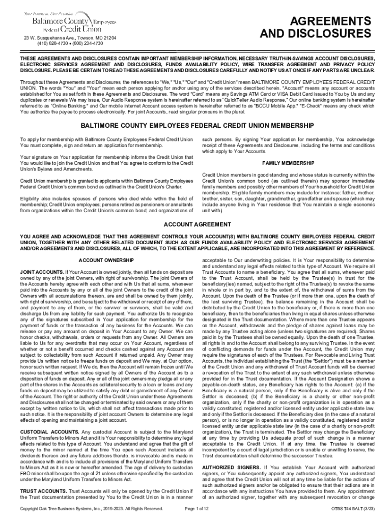 AGREEMENTS AND DISCLOSURES23 W. Susquehanna Ave., Towson, MD 21204 (410) 8284730 (800) 2344730THESE AGREEMENTS AND DISCLOSURES CONTAIN IMPORTANT MEMBERSHIP INFORMATION, NECESSARY TRUTHINSAVINGS ACCOUNT