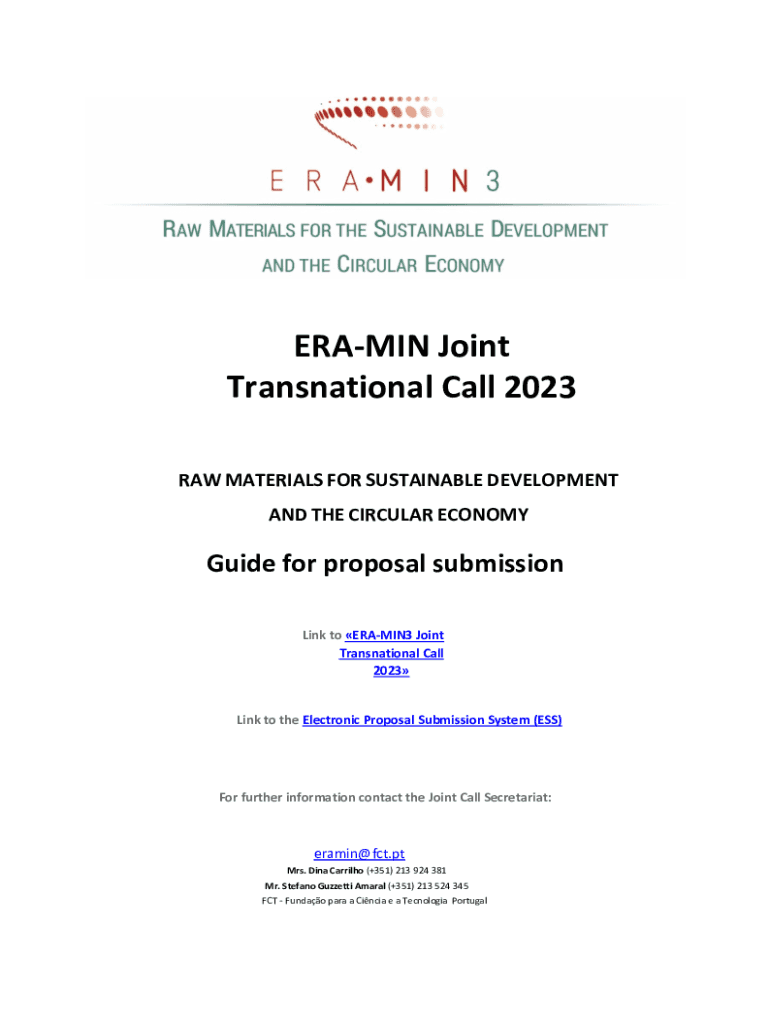 TRAIN Joint Transnational Call 2023 RAW MATERIALS FOR SUSTAINABLE DEVELOPMENT AND THE CIRCULAR ECONOMYGuide for proposal submission Link to ERAMIN3 Joint Transnational Call 2023Link to the Electronic