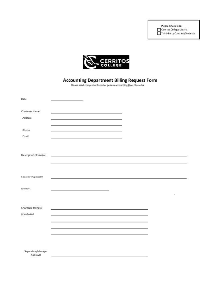 Get the free Cerritos College Accounting Department - Billing Request Form