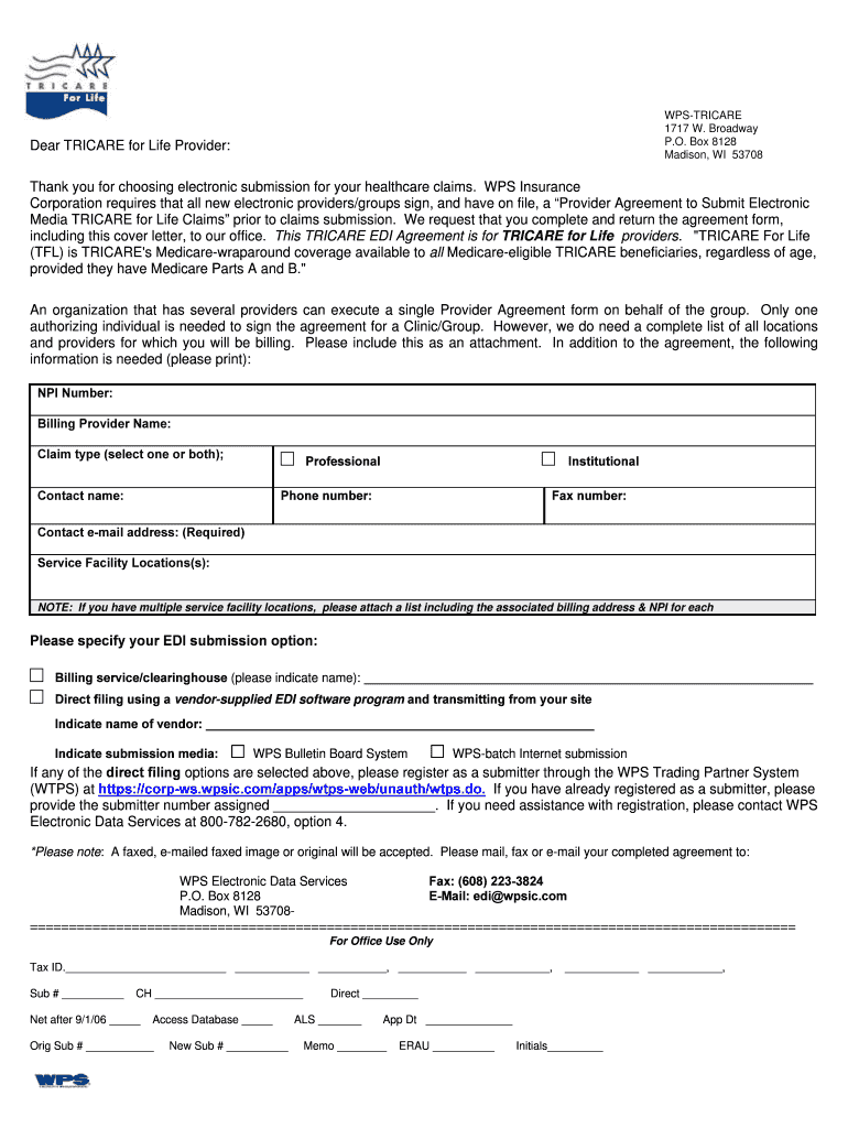 If changes are necessary after submission, you typically must contact WPS Insurance Corporation to update your agreement. Always ensure that any modifications comply with their requirements.
