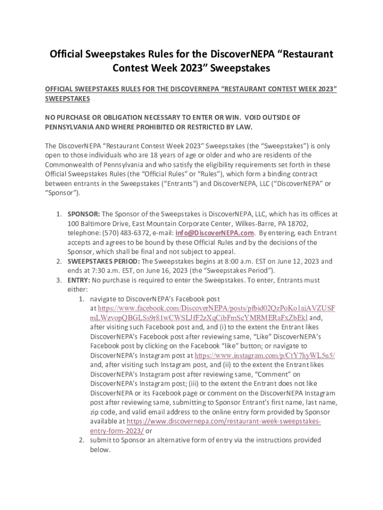 Get the free Official Sweepstakes Rules for the DiscoverNEPA Restaurant ...