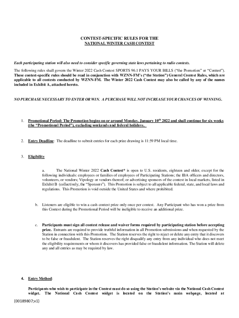 CONTESTSPECIFIC RULES FOR THE NATIONAL WINTER CASH Contested participating station will also need to consider specific governing state laws pertaining to radio contests. The following rules shall