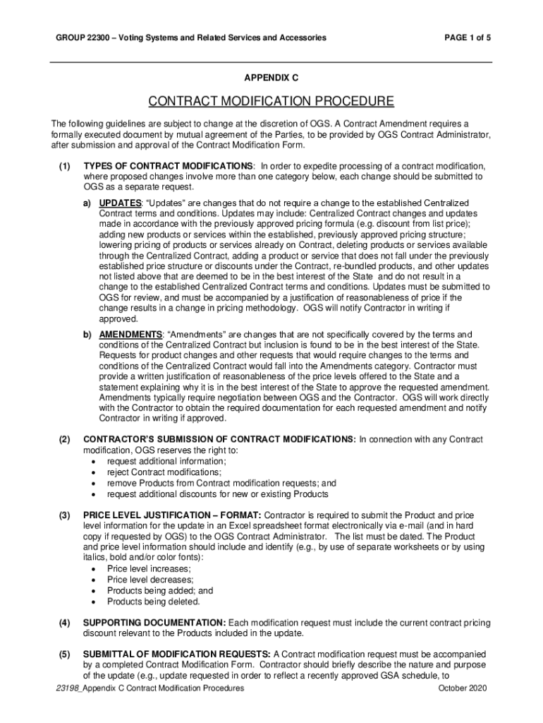 GROUP 22300 Voting Systems and Related Services and AccessoriesPAGE 1 of 5APPENDIX CONTRACT MODIFICATION PROCEDURE The following guidelines are subject to change at the discretion of DOGS. A Contract