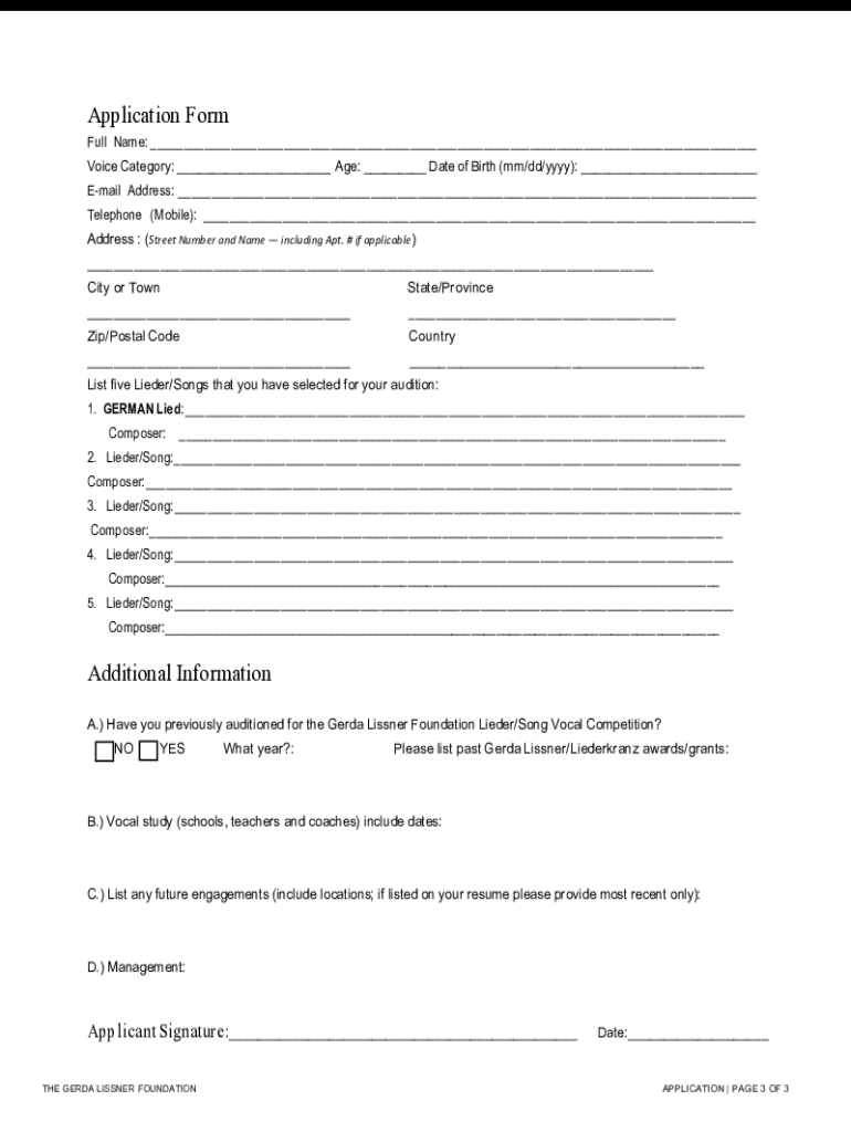 In Association with the Liederkranz Foundation2023 Lieder/Song Vocal CompetitionAPPLICATION All details related to this competition are subject to change.×International Students/Non-Resident Aliens: